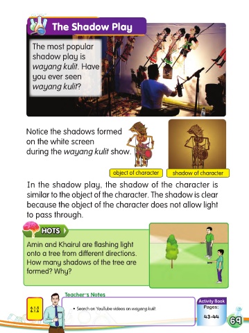 In the shadow play, the shadow of the character is