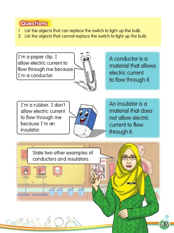 1. List the objects that can replace the switch to light up the bulb.