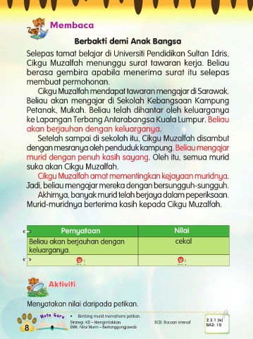 Nota Guru • Bimbing murid memahami petikan.