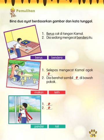 Bina dua ayat berdasarkan gambar dan kata tunggal.