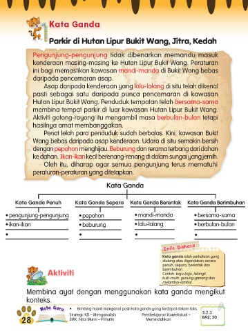 Nota Guru • Bimbing murid mengenal pasti kata ganda yang terdapat dalam teks. 5.2.3
