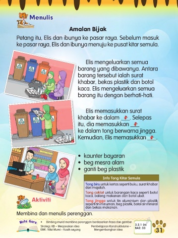 ke pasar raya, Elis dan ibunya menuju ke pusat kitar semula.