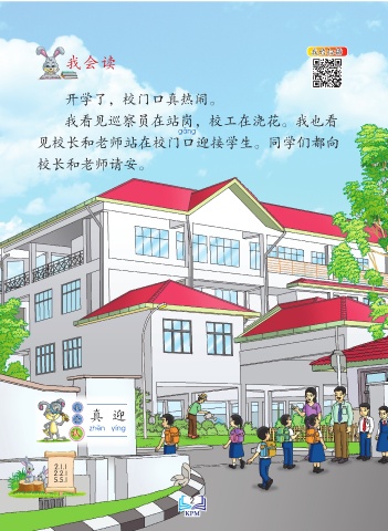我的扫描 我会读 开学了,校门口真热闹。 我看见巡察员在站岗,校工在浇花。我也看 gCng 见校长和老师站在校门口迎接学生。同学们都向 校长和老师请安。 我 会 真 迎 zhEn yJng 认 2.1.1 2.2.1 Saiz sebenar 5.5.1 2