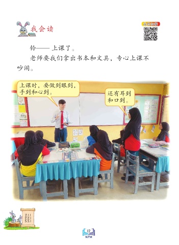 我的扫描 我会读 铃—— 上课了。 老师要我们拿出书本和文具,专心上课不 吵闹。 上课时,要做到眼到, 手到和心到。 还有耳到 和口到。 2.1.1 2.2.1 Saiz sebenar 5.5.1 12