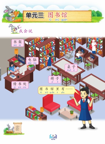 图书馆 单元三 图书馆 单元三 tV shU tV shU guCn guCn 我会说 书 架 shU jiD 电 脑 diDn nCo 桌 子 zhuO zi 椅 子 yK zi 借 书 处 jiH shU chX 1.2.1 5.3.1 Saiz sebenar 5.5.1 21