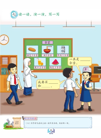 七 读一读,演一演,写一写 一共是 令吉。 我要买 和 。 话 给 老 师的话 给 老 师的 1.3.1 Saiz sebenar 3.2.1 (七)引导学生在班上演一演买卖活动,然后写一写。 41