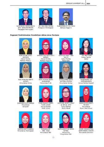 Penyelaras Kimia Penyelaras Fizik Penyelaras Biologi Ketua Panitia Sejarah
