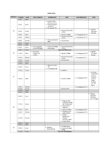 26 11.8.21 Rabu Pengurusan • Aktiviti COMBI • Perjumpaan BU 10 Sokongan