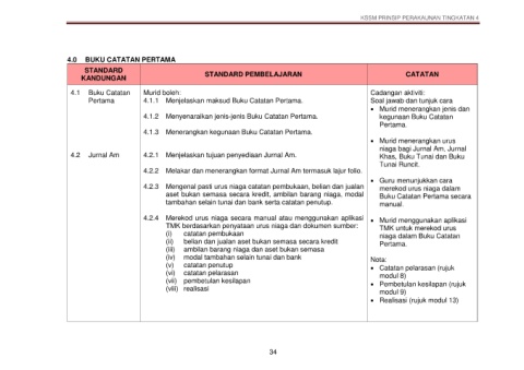 Pertama 4.1.1 Menjelaskan maksud Buku Catatan Pertama. Soal jawab dan tunjuk cara