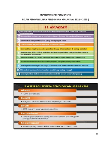 TRANSFORMASI PENDIDIKAN PELAN PEMBANGUNAN PENDIDIKAN MALAYSIA ( 2021 – 2025 ) 10