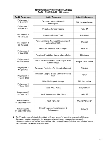 MAKLUMAN AKTIVITI KOKURIKULUM 2022