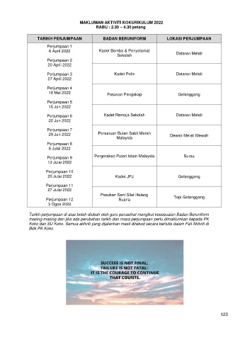 Tarikh perjumpaan di atas boleh diubah oleh guru penasihat mengikut kesesuaian Badan Beruniform