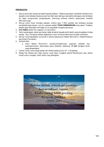8. Setiap hari Selasa dan Rabu semua murid akan mengikuti aktiviti Kokurikulum atau latihan