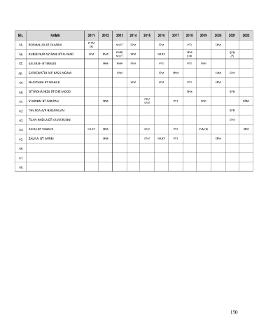 BIL NAMA 2011 2012 2013 2014 2015 2016 2017 2018 2019 2020 2021 2022