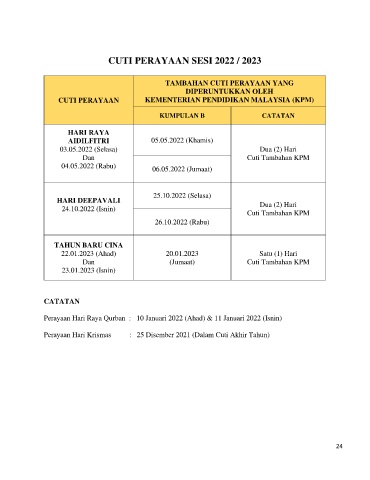 24.10.2022 (Isnin) Cuti Tambahan KPM