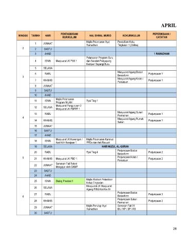 MINGGU TARIKH HARI HAL EHWAL MURID KOKURIKULUM