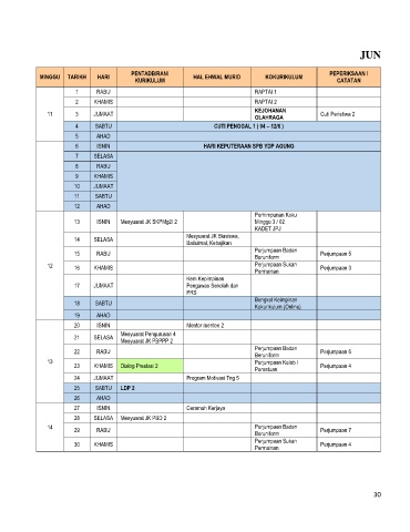 MINGGU TARIKH HARI HAL EHWAL MURID KOKURIKULUM