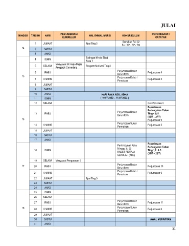 MINGGU TARIKH HARI HAL EHWAL MURID KOKURIKULUM