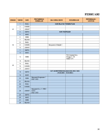 MINGGU TARIKH HARI HAL EHWAL MURID KOKURIKULUM
