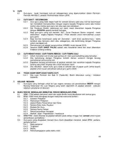 6.1 Guru-guru layak mendapat cuti-cuti sebagaimana yang diperuntukkan dalam Perintah-