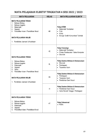 MATA PELAJARAN ELEKTIF TINGKATAN 4 SESI 2022 / 2023