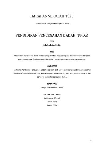 Melahirkan murid bebas dadah melalui program PPDa yang bersepadu dan menyeluruh daripada