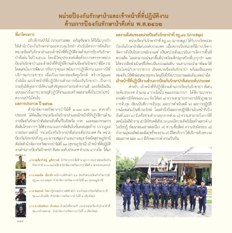 ให้สานักป้องกันรักษาป่าและควบคุมไฟป่า ดาเนนโครงการคดเลือก ป้องกันรักษาป่าดีเด่นระดับประเทศ เน่องจากเป็นหน่วยท่มีการบริหาร