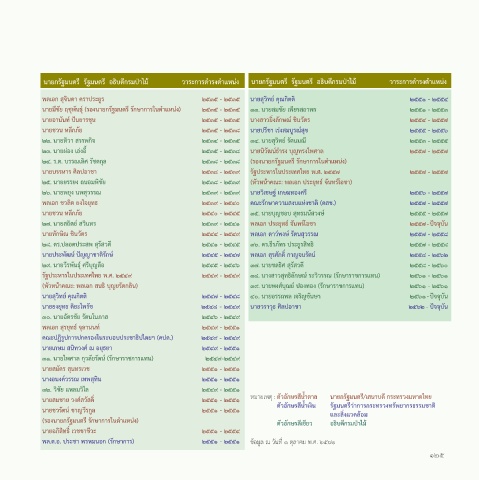 (รองนายกรัฐมนตรี รักษาการในตาแหน่ง) ตัวอักษรสีเขียว อธิบดีกรมป่าไม้