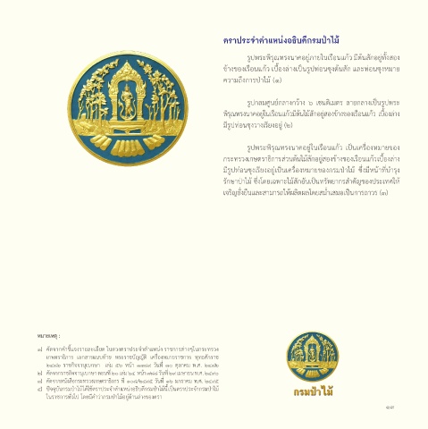 ๔) ปัจจุบันกรมป่าไม้ ได้ใช้ตราประจ�าต�าแหน่งอธิบดีกรมป่าไม้นี้ เป็นตราประจ�ากรมป่าไม้