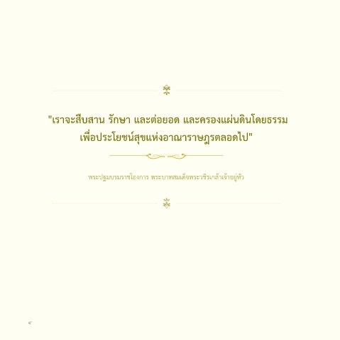 "เราจะสืบสาน รักษา และต่อยอด และครองแผ่นดินโดยธรรม เพื่อประโยชน์สุขแห่งอาณาราษฎรตลอดไป" พระปฐมบรมราชโองการ พระบาทสมเด็จพระวชิรเกล้าเจ้าอยู่หัว 4 5