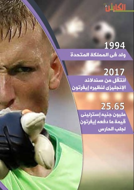 1994 ولد فى المملكة المتحدة 2017 انتقل من سندلاند الإنجليزى لنظيره إيفرتون 25.65 مليون جنيه إسترلينى قيمة ما دفعه إيفرتون لجلب الحارس