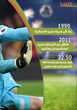 1990 ولد فى مدينة مدريد الإسبانية 2011 انتقل من أتليتكو مدريد لمانشيستر يوناتيد 22.50 مليون جنيه إسترلينى قيمة ما دفعه الشياطين الحمر لجلب الحارس