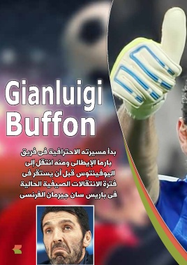 Gianluigi Buffon بدأ مسيرته الاحترافية فى فريق بارما الإيطالى ومنه انتقل إلى اليوفينتوس قبل أن يستقر فى فترة الانتقالات الصيفية الحالية فى باريس سان جيرمان الفرنسى