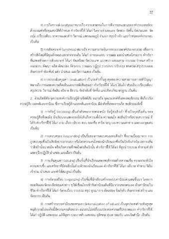 4) การวิเคราะห์ (analysis) หมายถึง ความสามารถในการพิจารณาแยกแยะองค์ประกอบย่อย