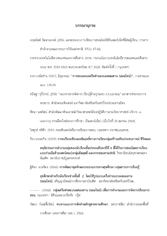 ขนิษฐา รุจิโรจน์. 2558. “แนวทางการจัดการ เรียนรู้ด้วยรูปแบบ e-Learning” เอกสารประกอบการ