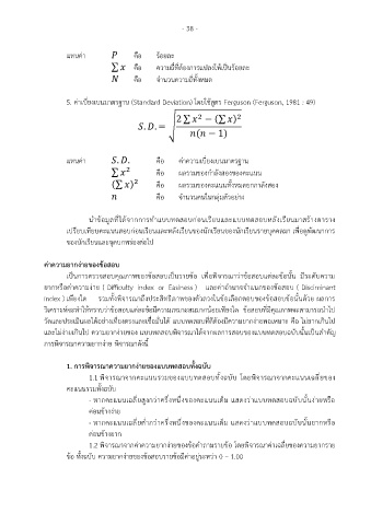 5. ค่าเบี่ยงเบนมาตรฐาน (Standard Deviation) โดยใช้สูตร Ferguson (Ferguson, 1981 : 49)