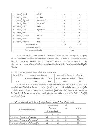 เรียนเป็น 14.07 คะแนน และค่าเฉลี่ยผลรวมคะแนนหลังเรียนเป็น 15.14 คะแนน และมีค่าผลต่างคะแนน