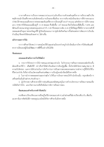 แบบ STAD ทำให้คะแนนเฉลี่ยอยู่ที่ 15.14 คะแนน ซึ่งเพิ่มขึ้น 1.07 คะแนน คิดเป็นร้อยละที่เพมขน 7.60% และ