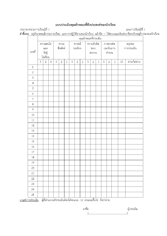 แบบประเมินคุณลักษณะที่พึงประสงค์ของนักเรียน