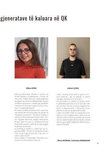 dentore” në Universitetin e Prizrenit. Elena MORINA, Valentina RAMADANI