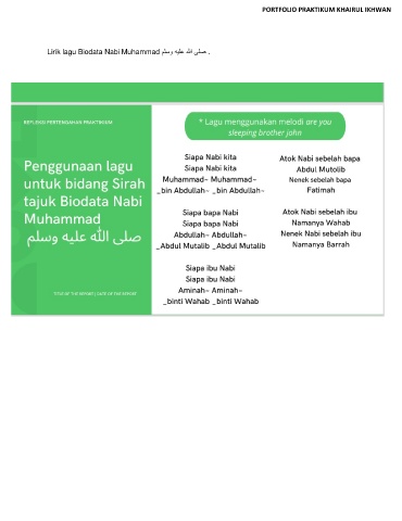 PORTFOLIO PRAKTIKUM KHAIRUL IKHWAN K Lirik lagu Biodata Nabi Muhammad ملسو هيلع الله ىلص .