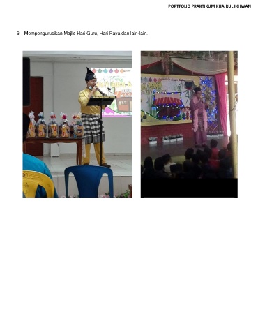 PORTFOLIO PRAKTIKUM KHAIRUL IKHWAN K 6. Mempengurusikan Majlis Hari Guru, Hari Raya dan lain-lain.