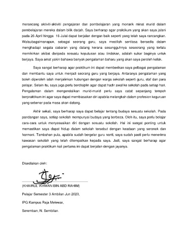berjaya. Saya amat yakin bahawa banyak pengalaman baharu yang akan saya peroleh kelak.