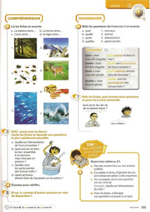 d. Quels animaux animal dans lecahier.Col le u ne photo.