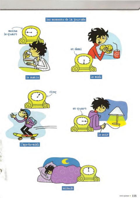 les moments de la journee ~ moins le quart 1 1apres-midi \. ilH.Jlfll 1 cent-quinze 115