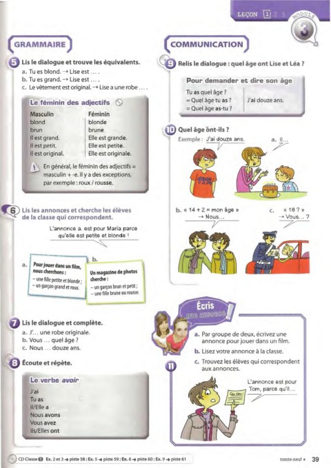 b. Tu es grand. -. Lise est ... . Pour demander et dir e son age