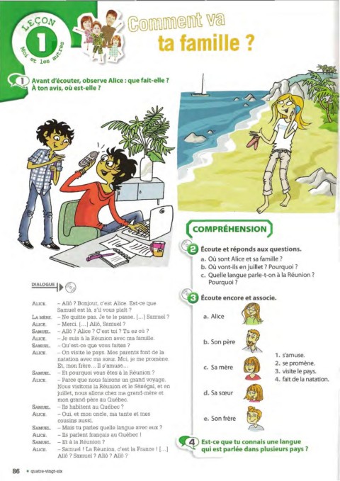 ALICE. Samuel! La Reunion, c'est la France! [ ... ] qui est parlee dans plusieurs pays ?