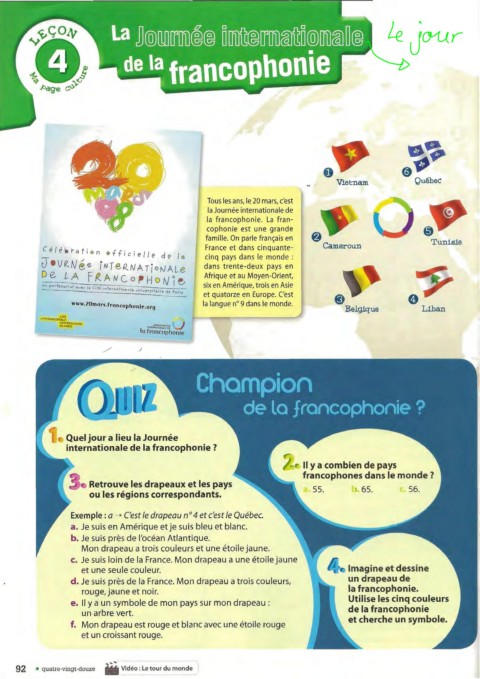 Exemple: a > Cest le drapeau n ° 4 et c'est le Quebec.