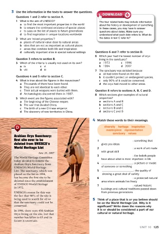 d culturally important sites in special natural settings Questions 6 and 7 refer to section D.