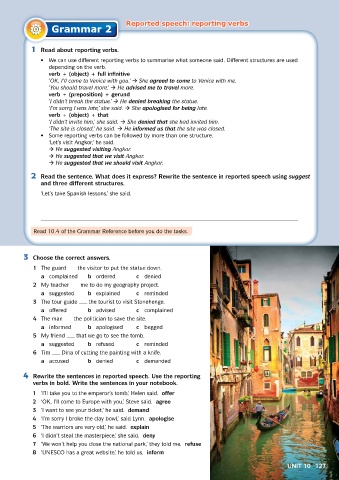 2 Read the sentence. What does it express? Rewrite the sentence in reported speech using suggest